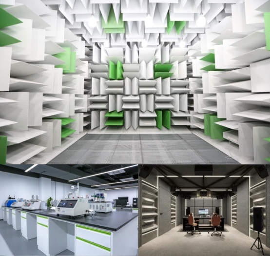 声谷实验室群是企业建设的中国最具规模最完整的综合性检测验证中心。该中心有专业实验室60 间,面积超10000平,涵盖声学、环境可靠性、光电等多个领域。你可以跟踪产品从原型开发、创意设计、工程验证到落地的全过程,探寻它诞生的秘密,在富有科幻感的空间里感受创新的奇妙。